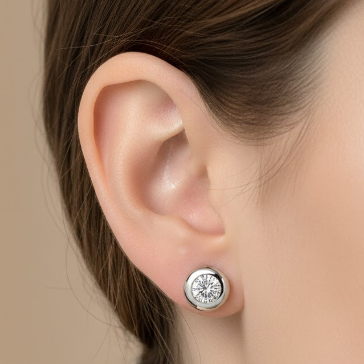 The Luminéa Classic Rubover Diamond Stud Earrings embody understated luxury through refined simplicity. Each earring features a single round brilliant diamond, elegantly enclosed in a full rubover setting that offers both security and a seamless visual appeal. This contemporary setting enhances the diamond’s brilliance while maintaining a smooth, polished silhouette that sits beautifully on the ear.
