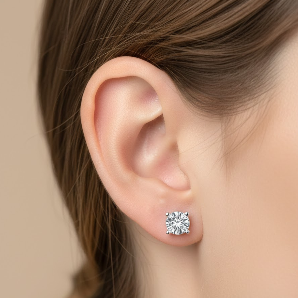 The Celestia Round Brilliant Diamond Stud Earrings are the ultimate expression of timeless elegance and everyday luxury. Each earring features a single round brilliant-cut diamond, expertly set in a four-claw setting that enhances sparkle while offering lasting security. The perfectly balanced proportions of the round cut deliver exceptional fire and brilliance from every angle.