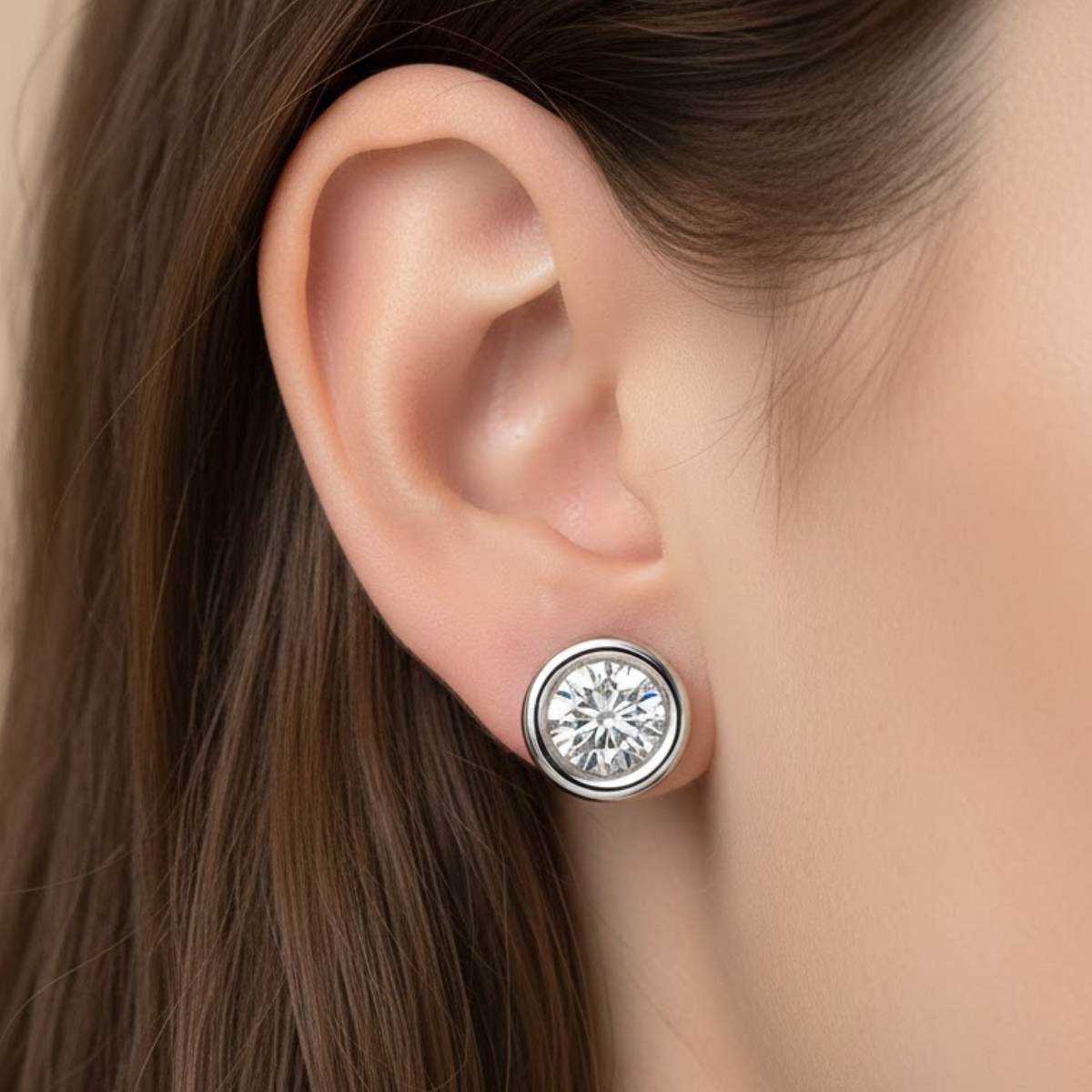 • Stud Earrings design featuring a single round-cut diamond