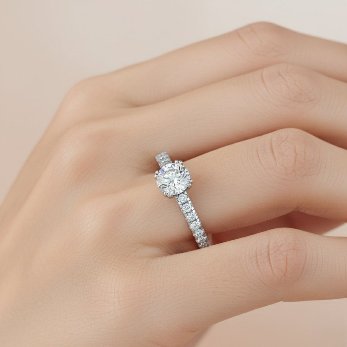 Round Fit Pavé Shoulder Solitaire Ring