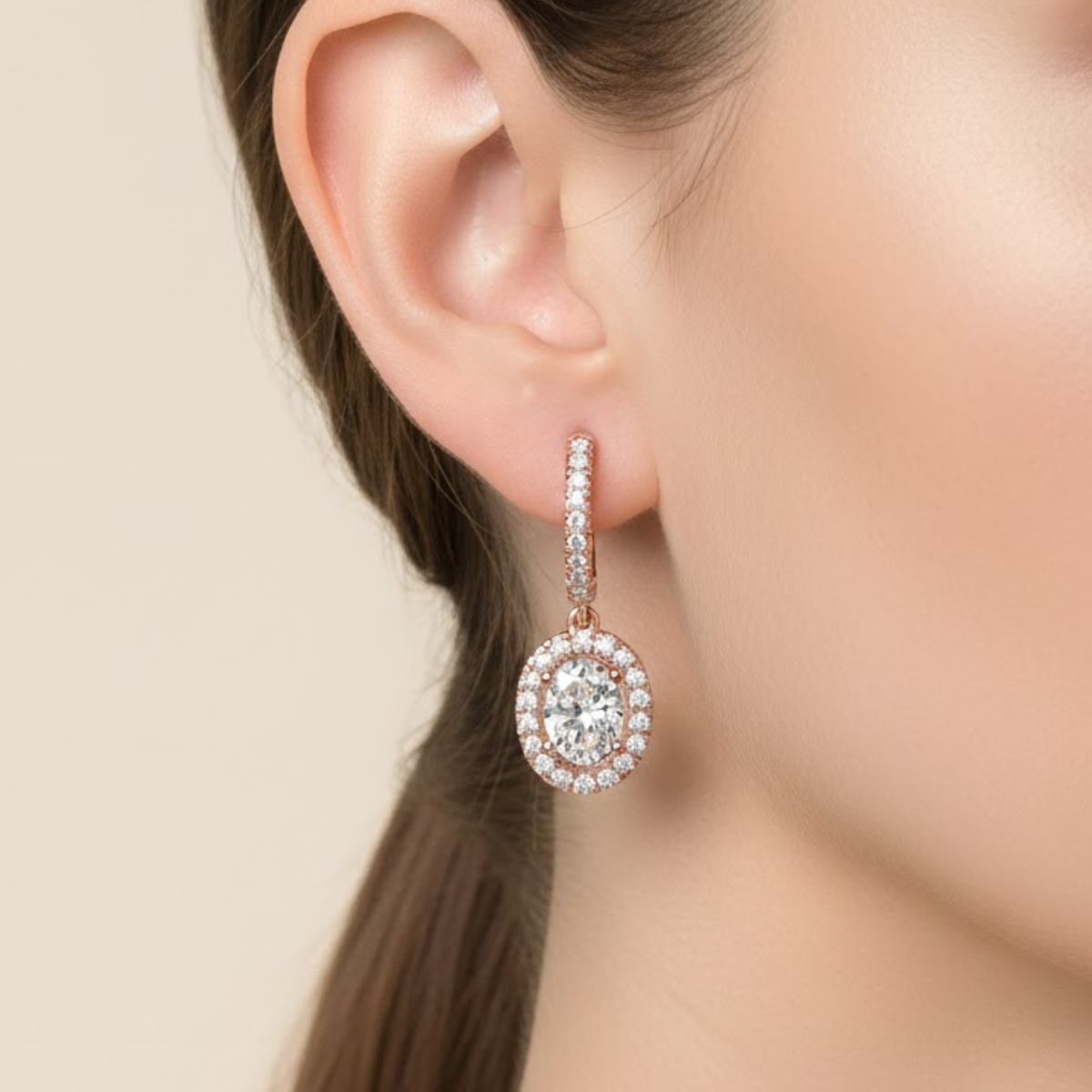 • Drop Earrings design featuring a single oval-shaped diamond