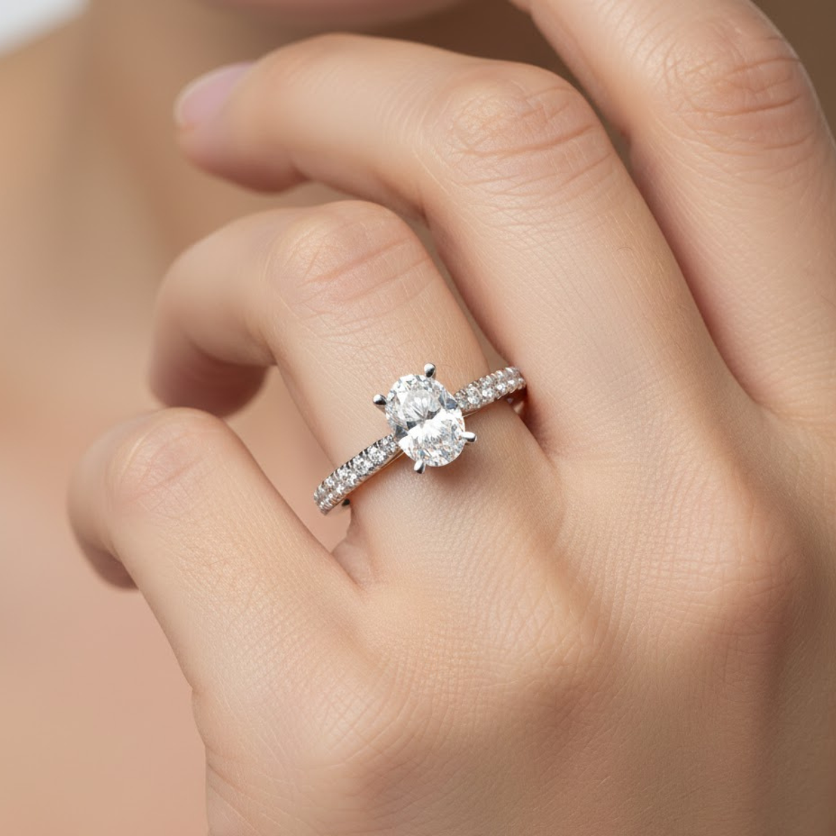 Elanora Oval Tulip Side Stone Solitaire Ring