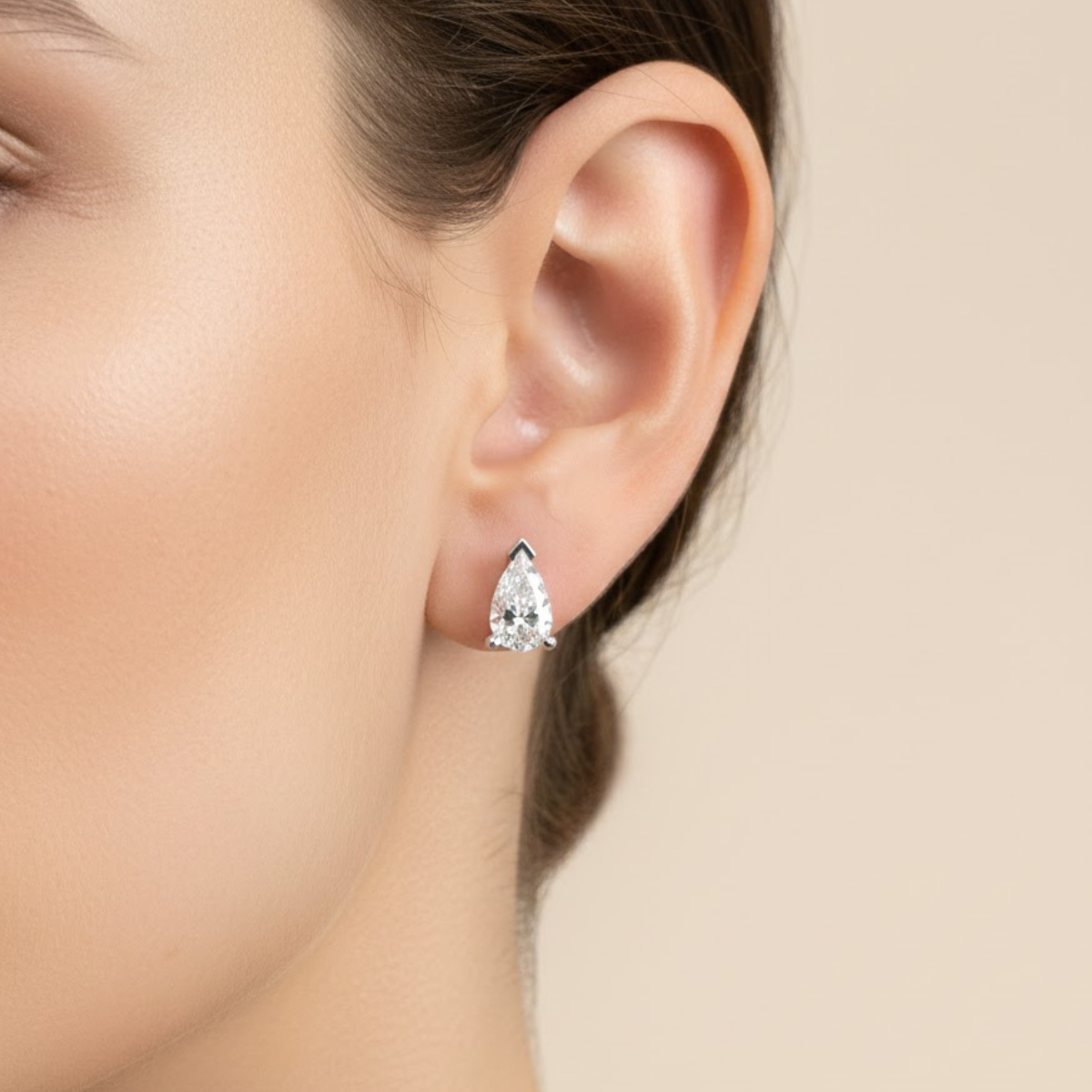 • Elegant stud earrings showcasing a pear-shaped solitaire diamond