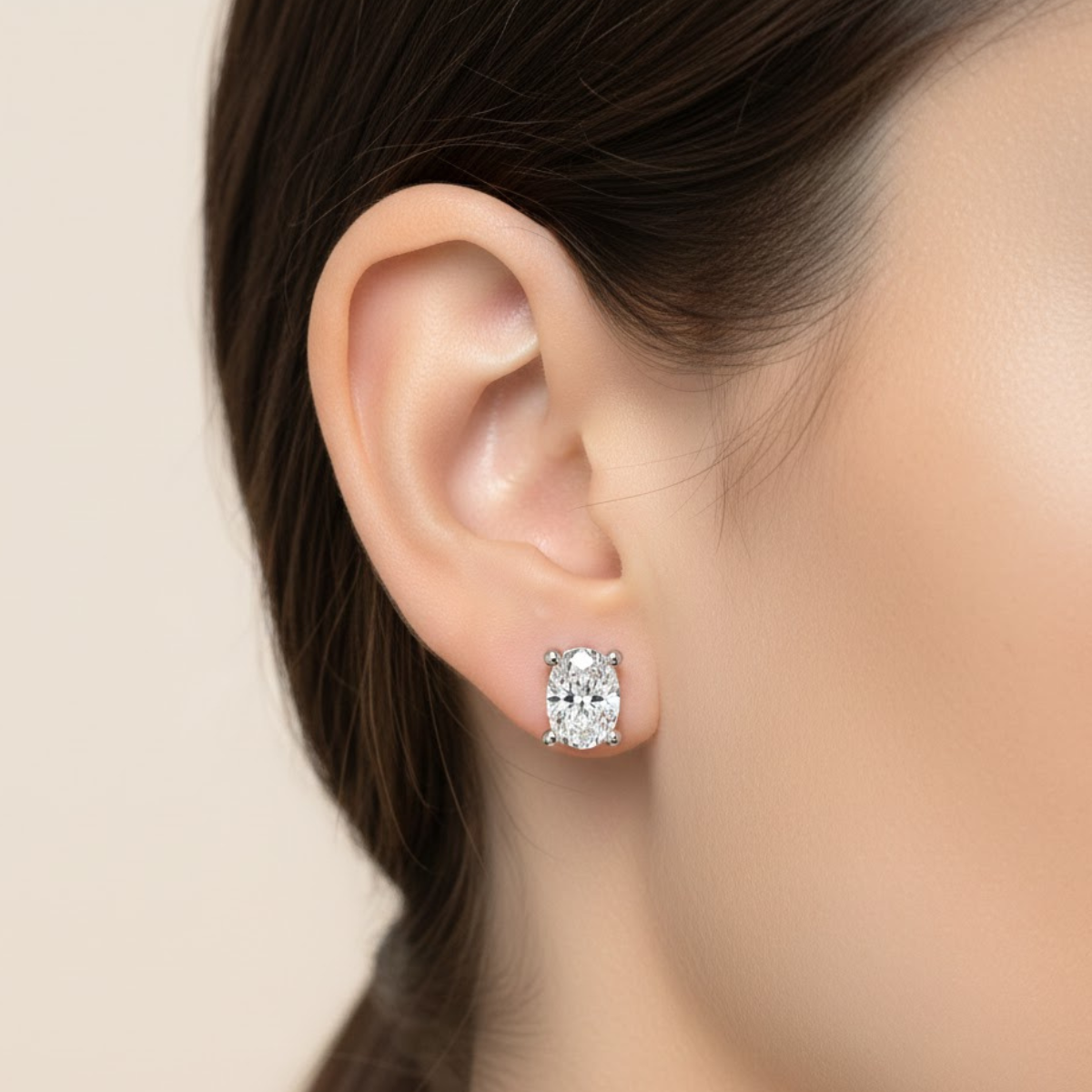 • Elegant stud earrings featuring a classic oval-cut solitaire diamond